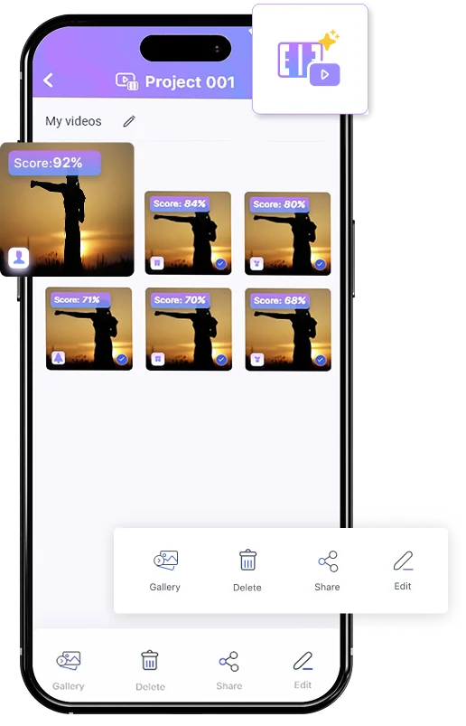 Each frame gets a score (e.g., 92% best for thumbnail).